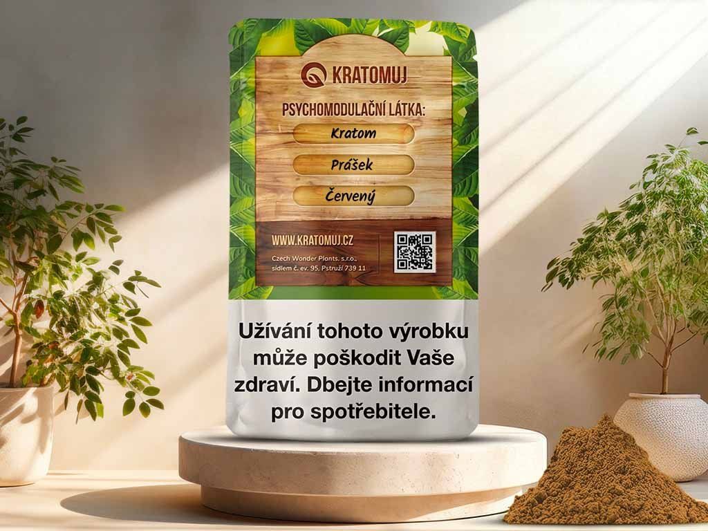 Červený kratom vzniká sušením a dlouhým procesem fermentace ze starých listů, což mu dává charakteristickou červeno-hnědou barvu. Tato vlastnost mu dodává specifické charakteristiky spojené s uvolněním těla a mysli. Červený kratom prášek navozuje relaxaci, pomáhá se snížením stresu, úzkosti a zlepšuje a navozuje spánek. Při větší dávce tlumí bolesti a má afrodiziakální účinky.