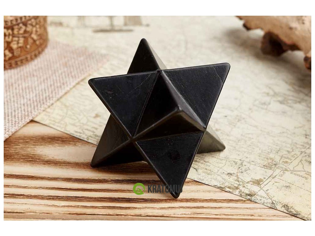 Hvězda Merkaba je magická a meditační pomůcka ze šungitu. Má krystalickou strukturu a řadí se k předmětům tzv. posvátné geometrie. Pomáhá aktivovat osobní ochranné pole a dosáhnout vyššího vědomí.